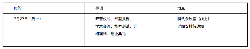 拟举办时间和方案:2020年7月27日(周一)(可能有变更,请密切关注学院官网营员名单和最终的活动安排方案的公布)
